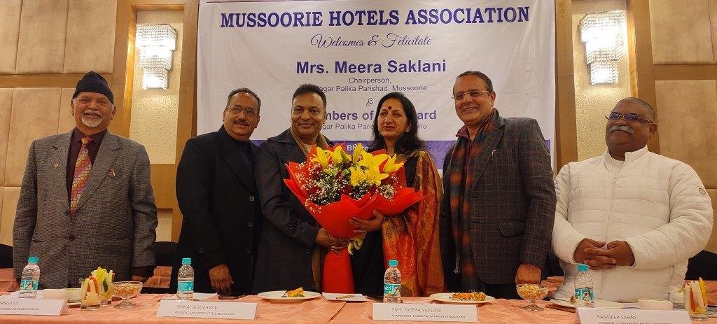 होटल एसोसिएशन ने नगरपालिका परिषद की नवनिर्वाचित अध्यक्ष मीरा सकलानी समेत अन्य बोर्ड सदस्यों के सम्मान में रात्रि भोज का आयोजन किया। सम्मान समारोह में बतौर मुख्य अतिथि पालिकाध्यक्ष मीरा सकलानी ने कहा कि मसूरी को बचाने व इसे वेंटिलेटर से बाहर निकालने के लिए शहर हित में कड़े निर्णय लेने पड़ेगे। उन्होंने कहा कि मसूरी की दुर्दशा करने के सभी जिम्मेदार है, लेकिन अब सभी को मिलकर सहयोग करना पडेगा। जिससे मसूरी को पुराने रूप और स्वरूप में लाया जा सके।